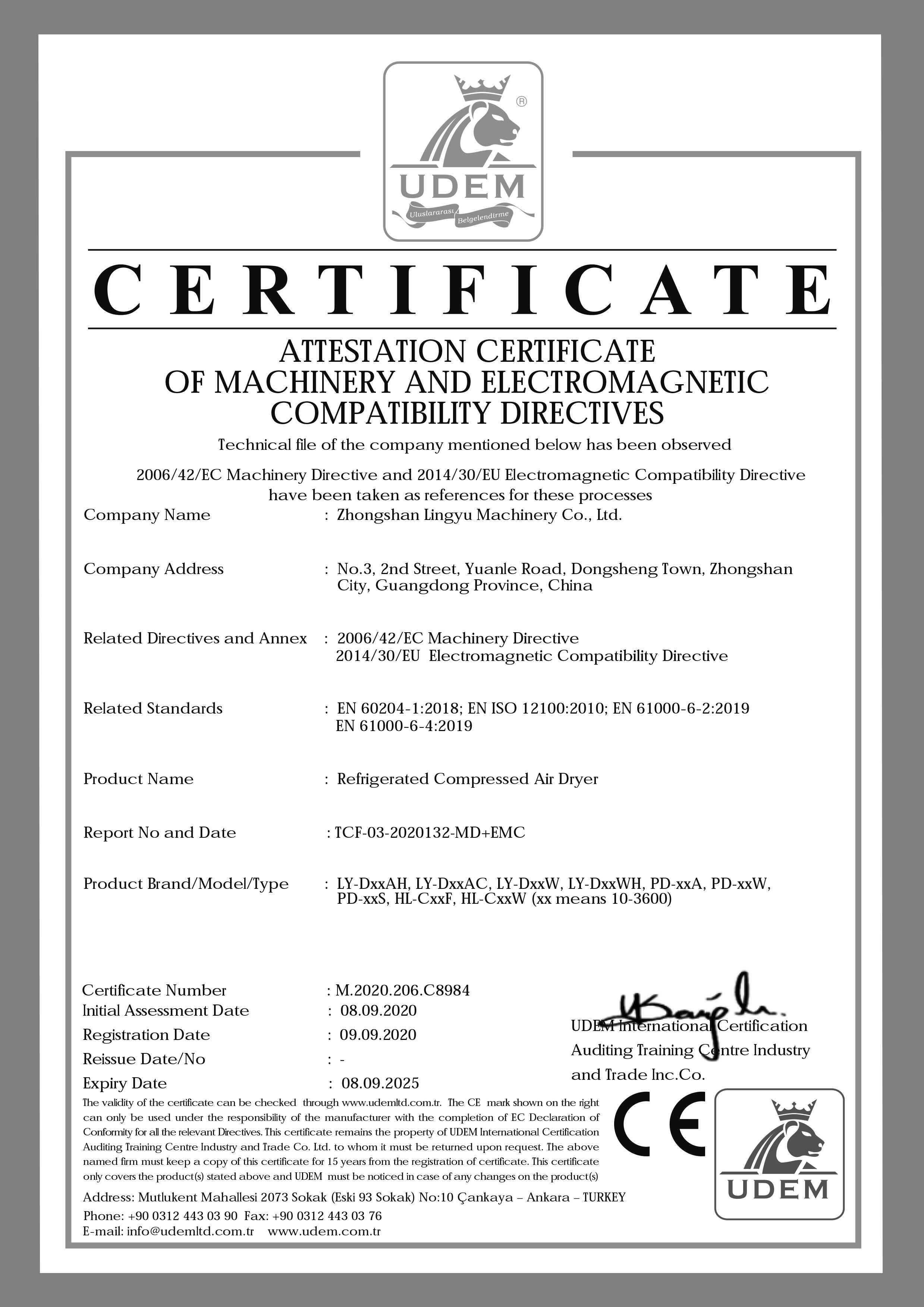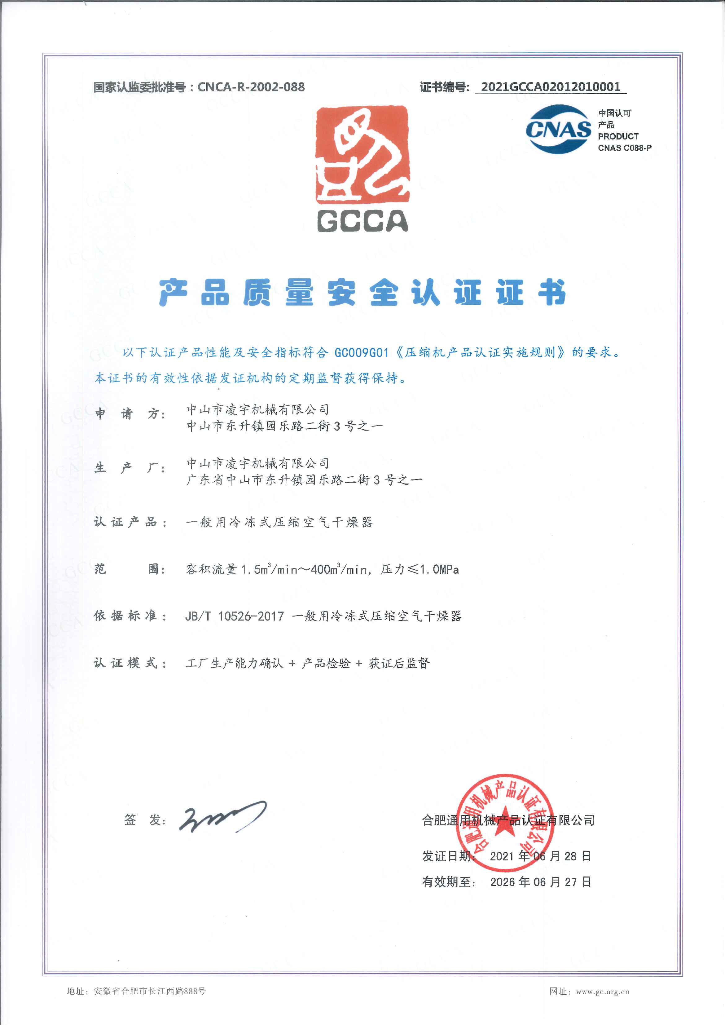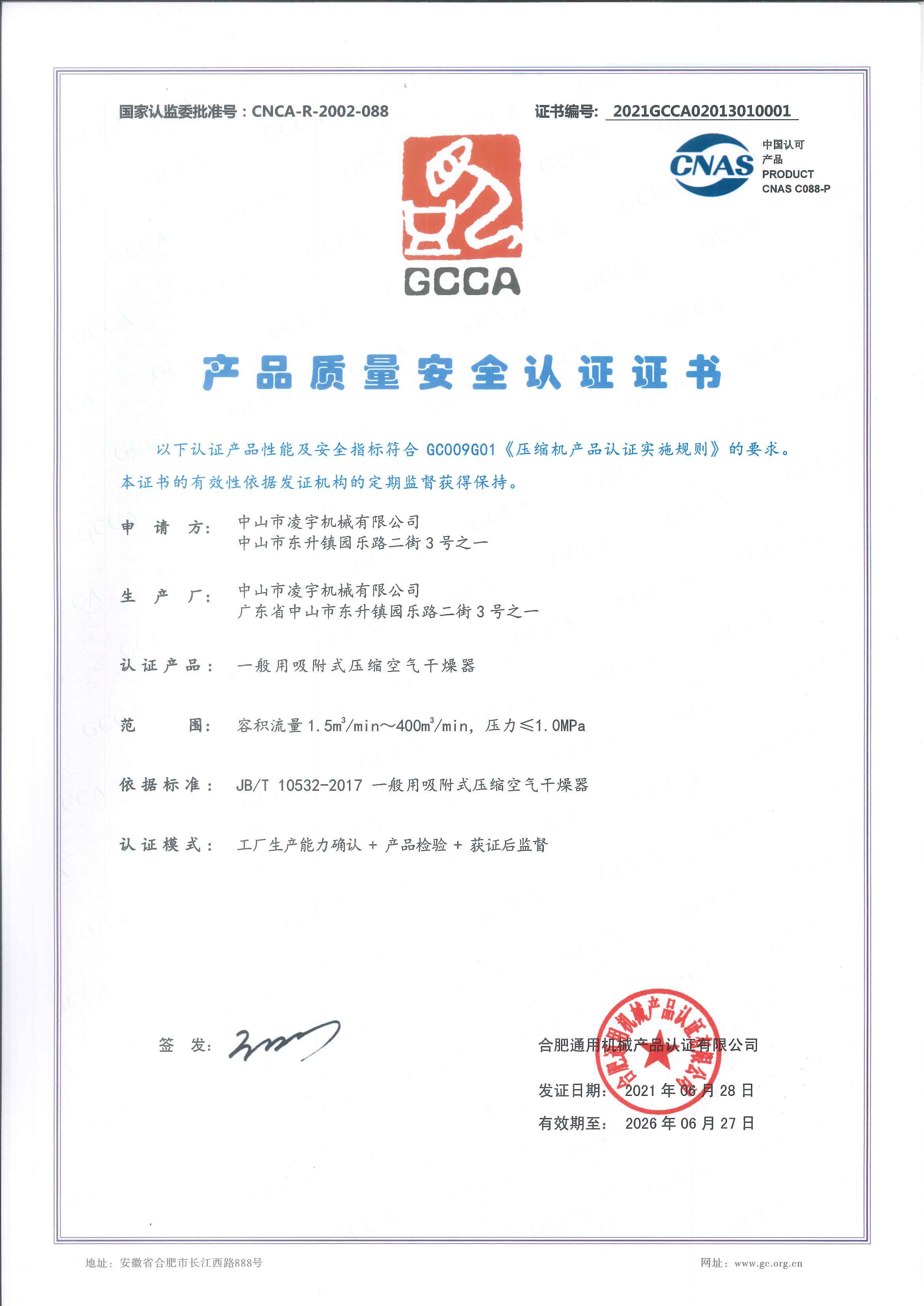 • 吸干機GCCA證書-凌宇機械